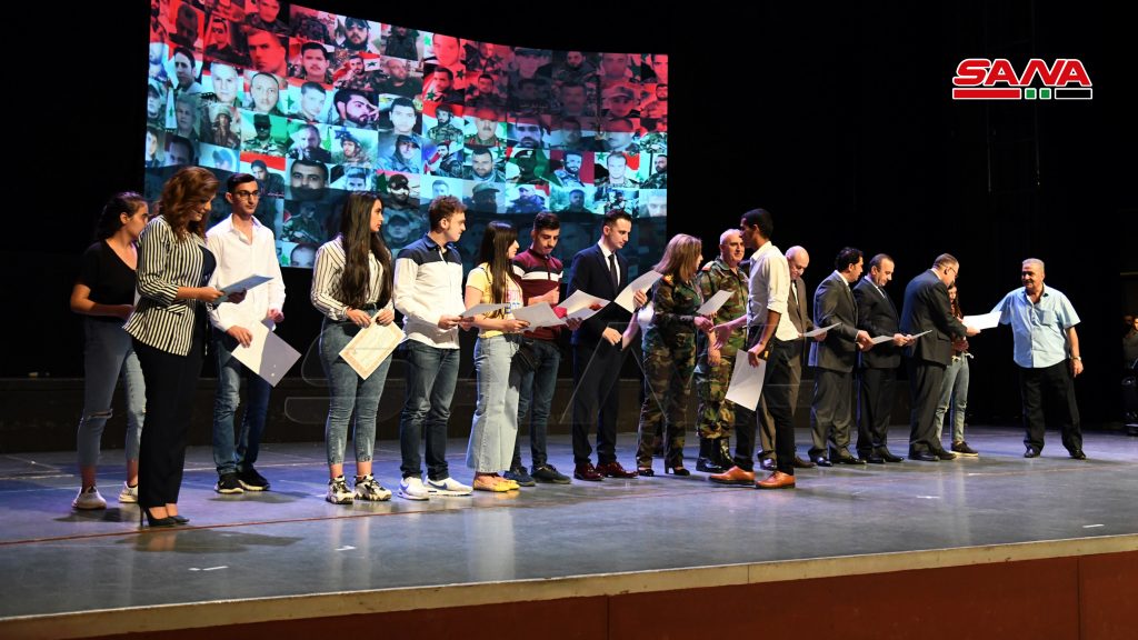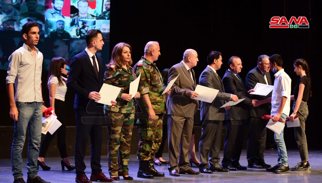 تقديراً لجهودهم وتفوقهم في التحصيل العلمي كرمت محافظة دمشق اليوم 213 طالباً وطالبة من المتفوقين في شهادتي التعليم الأساسي والثانوية العامة ومن أبناء وبنات الشهداء وجرحى الجيش العربي السوري وطلاب وطالبات الأولمبياد الخاص السوري والرياضيين والمواهب الثقافية والفنية في نادي المحافظة وأبناء أعضاء مجلس المحافظة وذلك خلال حفل فني لمواهب مشروع بكرا إلنا قدموا خلاله فقرات فنية عن الشهداء .