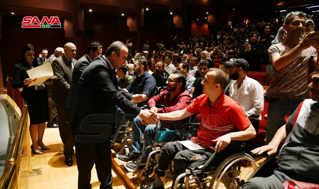 محافظ دمشق المهندس عادل العلبي أكد في كلمة له أن التفوق الذي حققه أبناء وبنات الشهداء هو استكمال لطريق النصر الذي رسم معالمه آباؤهم بدمائهم الطاهرة وتأكيد بأن لا شيء يقف أمام الإصرار على تحقيق طموحاتهم للمشاركة في بناءِ الوطن مشيراً إلى أن الجرحى الأبطال أثبتوا بنجاحهم أن الأجساد التي قارعت الأعداء هي نفسها التي ستضيء طريق سورية المتجددة.