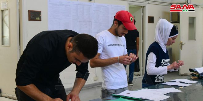 سانا رصدت أجواء تقديم طلبات المفاضلة التي بدأت أمس الأحد وتستمر لغاية الـ 30 من أيلول الجاري حيث أشار مدير مركز كلية الهندسة المدنية بجامعة دمشق المهندس عمر المصري إلى العمل لاختصار وقت التسجيل ما أمكن بحيث لا يتجاوز العشر دقائق مبيناً أن المركز يضم 53 حاسباً وفريقاً من المهندسين وموظفي الكلية وكوادر اتحاد الطلبة للتعامل مع المتقدمين بشكل منظم ودقيق.