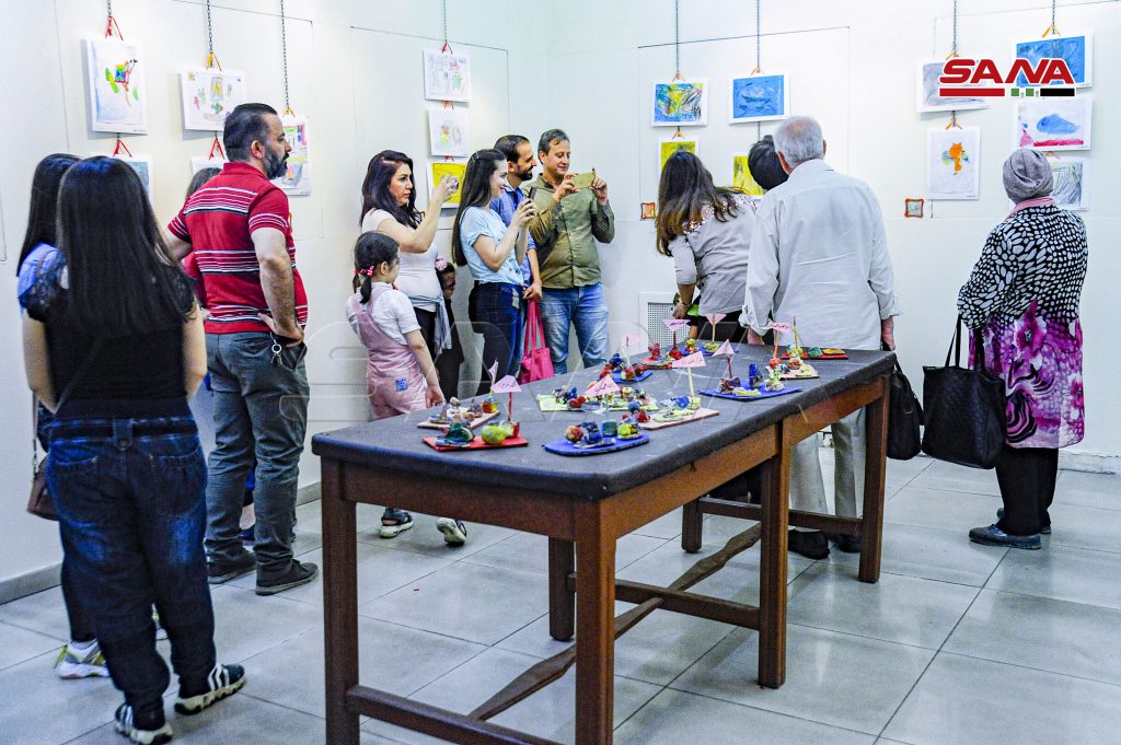 لوحات بريئة تخبئ وراء ألوانها الجريئة والعفوية مواهب كبيرة ومواد فنية من الصلصال المكون بجمال وأناقة اجتمعت ضمن معرض فني للأطفال في ثقافي أبو رمانة تحت اسم “برتقالي”.