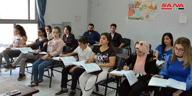 أطفال ويافعون من عدة مراحل عمرية يزينون المشهد التعليمي في المعهد العالي للغات بجامعة البعث في مشهد يؤكد أهمية هذه الحاضنة التعليمية.