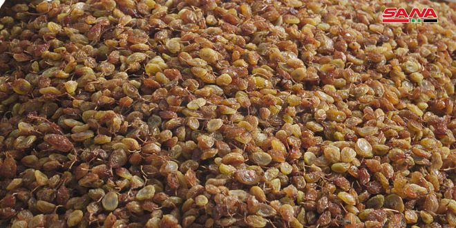 قدرت مديرية الزراعة بالسويداء إجمالي إنتاج مادة الزبيب المصنعة من ثمار العنب للموسم الحالي بنحو 1662 طناً.
