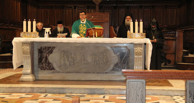 وعقب الصلاة التي أقامها الأب ميشيل شوقي توجه المشاركون بالدعاء تضامنا مع سورية والعراق وكل المظلومين كما رفع دعاء خاص من أجل المطرانين المخطوفين.