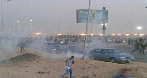 ووفقا لوسائل إعلام مصرية فإن الاشتباكات وقعت بعد تدافع الجمهور داخل ممر ضيق لدخول الملعب ما اضطر الامن لتفريقهم.