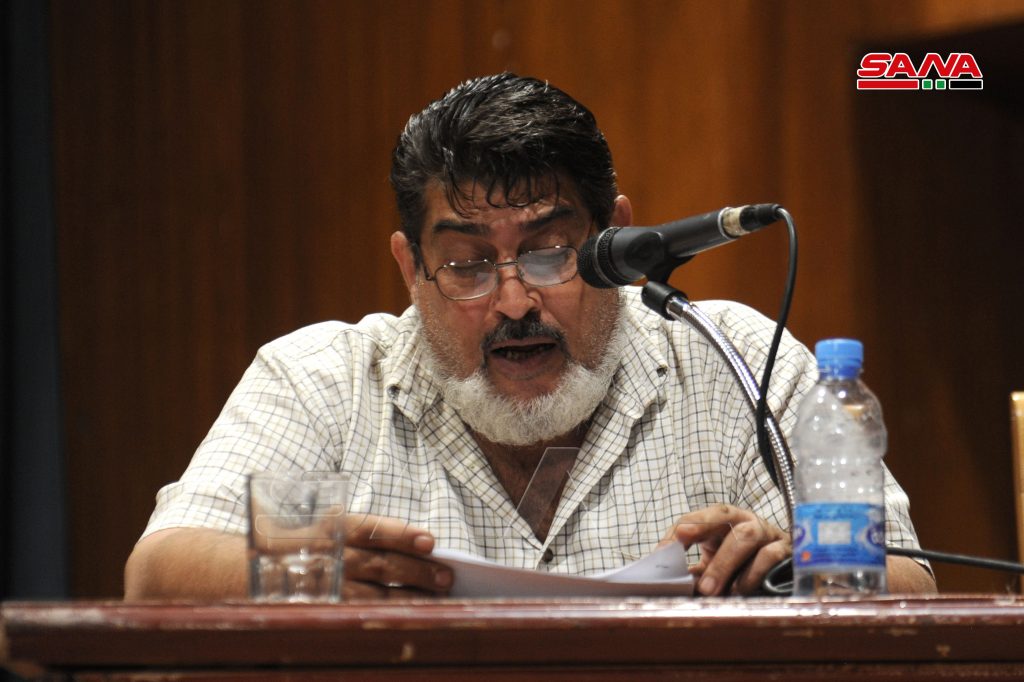مدير الأمسية الباحث بكور العاروب تحدث عن صفات الشعر الحقيقي ومساواة كل أشكال الشعر ببعضها والتي من المفترض أن يميزها التكوين الفني وما تحتويه من إبداع كما ألقى نصوصاً شعرية موزونة عبرت عما يجول في داخله من انعكاسات اجتماعية.