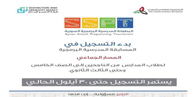 وأشارت الهيئة في بيان تلقت سانا نسخة منه اليوم إلى أن الفرصة متاحة أمام المتميزين والمهتمين من طلاب المدارس بالبرمجة التنافسية ضمن شرائح عمرية مختلفة من كل المحافظات لتطوير المهارات وكشف التميز في مجال المعلوماتية مبينة أن التسجيل مستمر حتى الـ 30 من أيلول الجاري عبر ملء الاستمارة الموجودة على صفحة الهيئة الرسمية على موقع التواصل الاجتماعي “فيسبوك”.