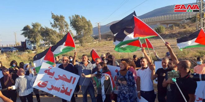 شارك المئات من أبناء الجولان السوري المحتل والأراضي الفلسطينية المحتلة عام 1948 بوقفة أمام معتقل “جلبوع” تضامناً مع الأسرى الفلسطينيين والسوريين والعرب في معتقلات الاحتلال الإسرائيلي وتنديداً بالحملة القمعية بحقهم بعد عملية نفق الحرية.