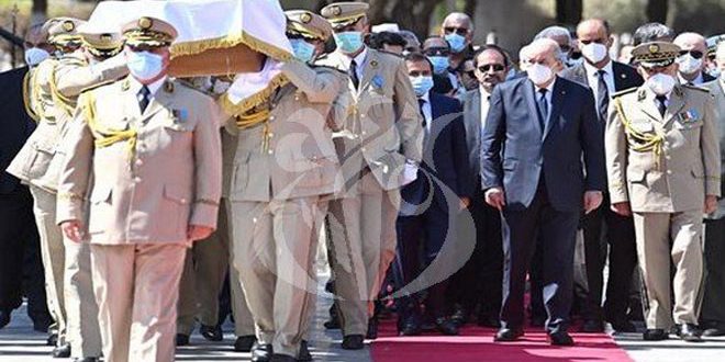 وذكرت وكالة الأنباء الجزائرية (واج) أنه حضر مراسم الجنازة رئيس الجمهورية عبد المجيد تبون ورئيس مجلس الأمة صالح قوجيل وكبار المسؤولين في الدولة وشخصيات وطنية ومجاهدون إلى جانب ممثلي السلك الدبلوماسي المعتمد في الجزائر.