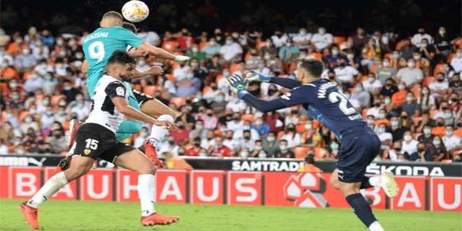 وتقدم هوغو بورو بهدف لبلنسية في الدقيقة 66 بتسديدة قوية من داخل منطقة الجزاء وبدا أن صاحب الأرض سينتزع قمة الدوري لكن فينيسيوس جونيور أدرك التعادل للريال قبل أربع دقائق من نهاية الوقت الأصلي بعدما تلقى تمريرة من كريم بنزيمة وسدد كرة أبدلت اتجاهها.