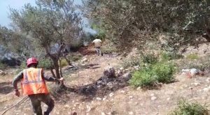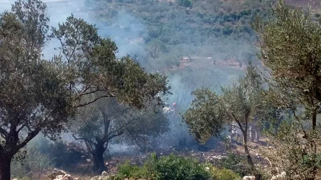 وأوضح عاقل إلى أن المساحة المحروقة تقدر بستة دونمات مزروعة بمئتي شجرة زيتون وبعض الأشجار الحراجية.