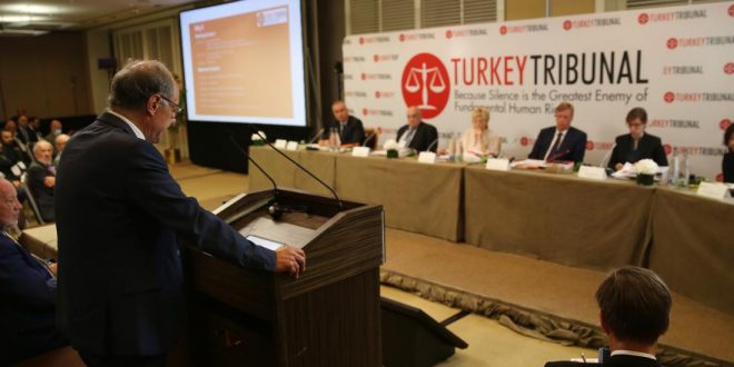 وأضافت الصحيفة أن المحاكمة تستمر في جنيف لمدة أربعة أيام بمشاركة قضاة بعضهم عملوا سابقاً في المحكمة الأوروبية لحقوق الانسان إضافة إلى سكرتير لجنة حقوق الانسان التابعة للأمم المتحدة وقاضي المحكمة الدستورية بجنوب إفريقيا ونائب رئيس المحكمة الإدارية لمجلس أوروبا وخلال المحاكمة تم عرض تقارير المحامين المشهورين عالمياً وشهادات ضحايا انتهاكات حقوق الانسان ضد حكومة رئيس النظام التركي.