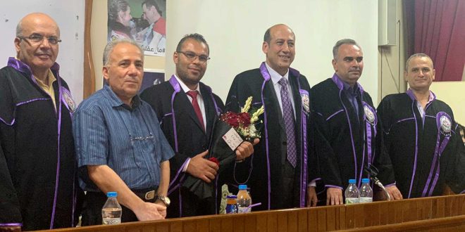 وفي نهاية المناقشة تم منح الباحث حازم طلال الخرابة درجة الدكتوراه في اللغة الإنكليزية بتقدير امتياز.