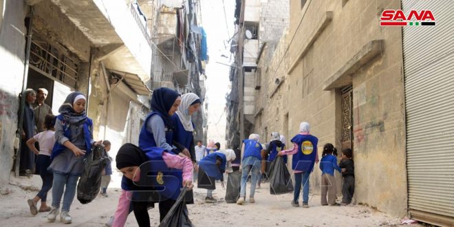 نفذ مجلس مدينة حلب اليوم بالتعاون مع فرع اتحاد شبيبة الثورة حملة نظافة استهدفت حي الفردوس المحرر من الإرهاب.