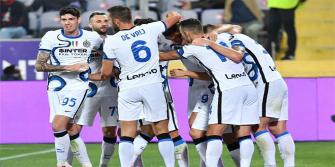 تصدر إنتر ميلان دوري الدرجة الأولى الإيطالي لكرة القدم مؤقتاً بفوزه على مضيفه فيورنتينا 3-1 اليوم.