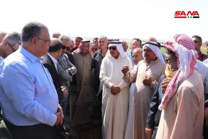 وخلال جولة لوزير الزراعة والإصلاح الزراعي المهندس محمد حسان قطنا في ريف الرقة الشرقي اطلع على آليات العمل في محطة ضخ المغلة بمنطقة معدان ومركز السبخة للأعلاف كما التقى عددا من الفلاحين في حقول القطن والسمسم والذرة.