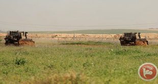 في السياق، توغلت قوات الاحتلال في أراضي الفلسطينيين شمال قطاع غزة المحاصر وجرفت مساحات منها.