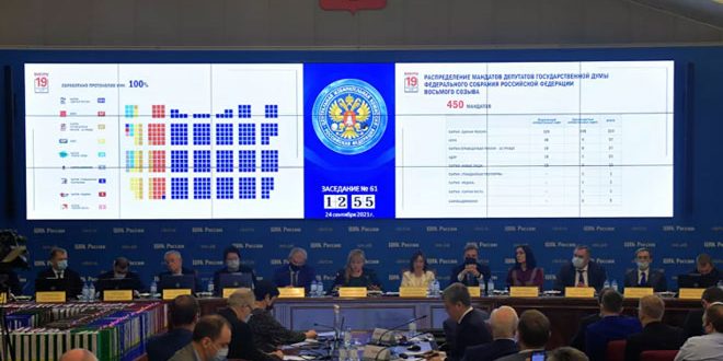 وأجريت انتخابات مجلس الدوما للدور التشريعي الثامن في الفترة ما بين الـ 17 والـ 19 من أيلول الجاري بالتزامن مع الانتخابات الأقاليمية والبلدية وتم تنظيم التصويت الإلكتروني عن بعد في العديد من المناطق بينها موسكو.