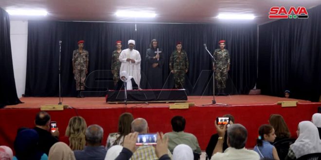 وأوضح المحمد أن الفريق قدم لوحات غنائية ورياضية إضافة إلى عرضين مسرحيين هما “صوت الشهيد” و”ياسمين” تحدثا عن الأحداث التي مرت بها سورية وحملا رسالة مفادها بأن السوريين هم بناة الحضارة والإنسان ومهد المحبة والسلام.