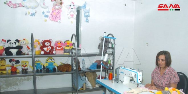 بسبعة أمتار من قماش الفرو بمبلغ عشرين ألف ليرة بدأت غنوة خداج قبل نحو ثلاث سنوات مشوارها بتصنيع ألعاب الأطفال ضمن ورشة صغيرة بمنزلها في مدينة شهبا وذلك بعد خضوعها لدورة تدريبية في منارة شهبا المجتمعية للأمانة السورية للتنمية وضعتها على الطريق الصحيح وجعلتها تحول هوايتها بالأعمال اليدوية إلى مهنة مولدة للدخل.