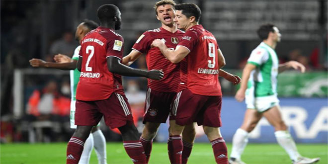 وسجل الفريق البافاري أهدافه عن طريق توماس مولر وجوشوا كيميتش وسيباستيان غريسبيك “هدف عكسي” في الدقائق “10 و31 و68” فيما أحرز سيدريك إيتن هدف فورت الوحيد في الدقيقة 87.