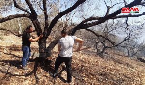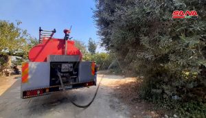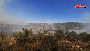 أخمد عناصر فوج إطفاء طرطوس الحريق الذي اندلع اليوم في حراج قرية اسقبولة ومزرعة بيت حسين بمنطقة الشيخ سعد بريف المحافظة.