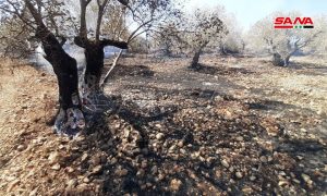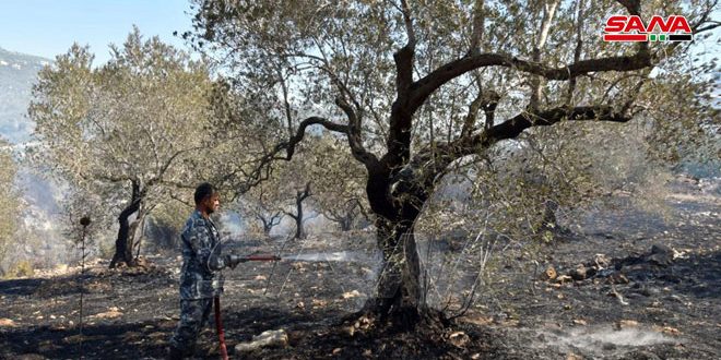 وأوضح قائد فوج إطفاء طرطوس العقيد سمير شما لمراسلة سانا أن عناصر الفوج أخمدوا الحريق بالتعاون مع دائرة الحراج في مديرية الزراعة والمجتمع المحلي لافتاً إلى أن الحريق أتى على مساحات واسعة من الأراضي المزروعة بالزيتون.