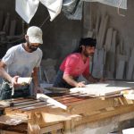 الحرفي فراس عبد الكريم جريش ورث هذه المهنة عن اجداده أيضا وبين أن آلية عمله تتمثل بنشر الحجر القادم من المقالع على شكل ألواح ومن ثم تقطيعها حسب طلب الزبون لافتا إلى أن الحجر اتسعت مجالات استخداماته فبات يطلب للمجالي والمطابخ وملابن الأبواب والنوافذ وتلبيس المنازل والنحت ويقدر إنتاجه اليومي بنحو 100 متر واعتماده يتركز أكثر على بيع الكتل الحجرية.