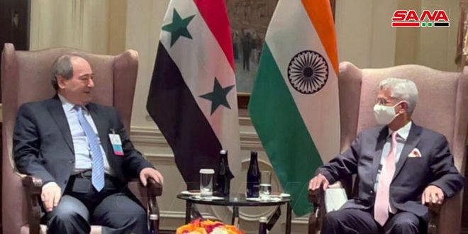 بدوره عبر الوزير المقداد عن تقدير سورية لمواقف الهند الداعمة لسورية والمساعدات التي قدمتها مشيراً إلى أن سورية تولي أهمية كبيرة لتطوير العلاقات مع الهند ولا سيما في ظل سياسة سورية بالتوجه شرقاً.