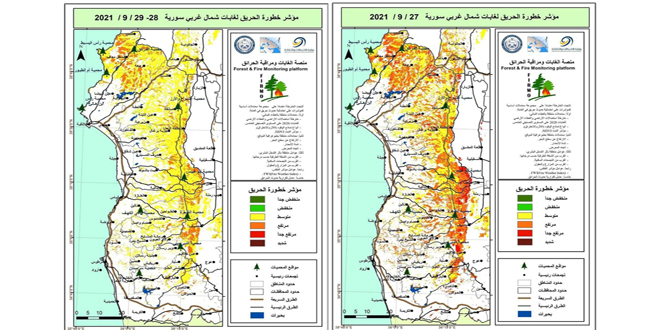 وأشارت إلى أن المنصة حذرت من إشعال أي حرائق لكون مستويات الخطورة مرتفعة بشكل عام وخطورة الحرائق ملحوظة داعية للإبلاغ عن أي حريق فور اندلاعه على الأرقام المجانية 188 و113 مبينة أن إعداد الخرائط يتم بالتعاون مع المديرية العامة للأرصاد الجوية.