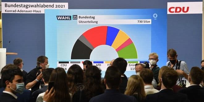 النتائج الأولية الرسمية التي نشرها اليوم موقع اللجنة الانتخابية الألمانية أظهرت فوز الحزب الاشتراكي الديمقراطي بقيادة أولاف شولتز بالانتخابات بحصوله على 25.7 بالمئة من الأصوات متقدماً بفارق ضئيل على المحافظين بقيادة أرمين لاشيت الذي حصل على 24.1 بالمئة من الأصوات وهي النتيجة الأسوأ في تاريخه بينما حل حزب الخضر ثالثاً مع نسبة 14.8 بالمئة يليه الحزب الديمقراطي الحر بنسبة 11.5 بالمئة.