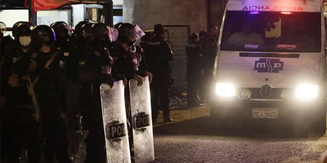 قُتل 24 سجيناً على الأقل وأصيب أكثر من 40 آخرين بجروح في مواجهات بالأسلحة النارية دارت بين سجناء داخل سجن في ولاية غواياس في جنوب غرب الإكوادور.