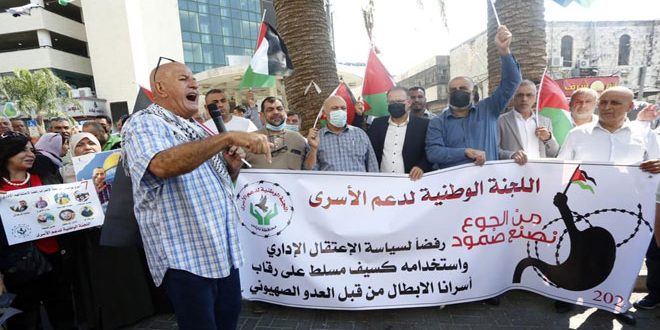 ويواصل سبعة أسرى فلسطينيين إضرابهم عن الطعام احتجاجاً على جرائم الاحتلال وهم كايد الفسفوس المضرب منذ 78 يوماً ومقداد القواسمة 71 يوماً وعلاء الأعرج 53 يوماً وهشام أبو هواش 45 يوماً ورايق بشارات 40 يوماً وشادي أبو عكر 37 يوماً والأسير حسن شوكة المضرب منذ 11 يوماً.