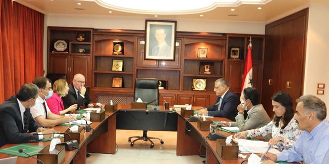ناقش وزير الزراعة المهندس محمد حسان قطنا اليوم مع ممثل منظمة الأغذية والزراعة للأمم المتحدة الفاو بدمشق مايك روبسون والفريق الفني المرافق سير العمل بمشروع التعاون الفني حول تنفيذ المرحلة الأولى من مبادرة “يداً بيد” الذي تنفذه الوزارة بالتعاون مع الفاو.