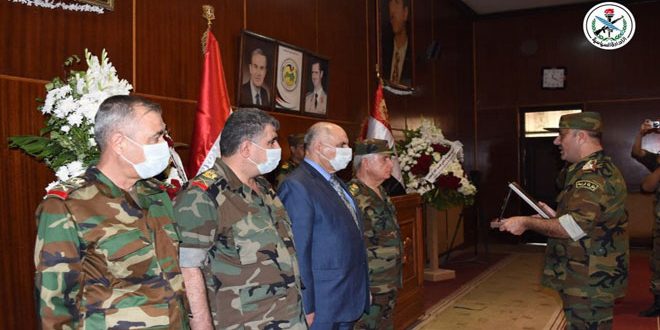 كما ألقى مدير الأكاديمية كلمة أشار فيها إلى أن الأكاديمية العسكرية العليا دأبت على تزويد الدارسين بالعلوم العسكرية الحديثة وتحسين خبراتهم وتطوير مهاراتهم في العمل القيادي بما ينسجم وظروف الحرب الحديثة والأخطار التي تواجه وطننا الحبيب لافتاً إلى أن ما تنجزه الأكاديمية من مهام وواجبات لم يكن ليتم لولا الاهتمام الكبير والرعاية الكريمة من القيادة العامة للجيش والقوات المسلحة وعلى رأسها السيد الرئيس الفريق بشار الأسد.