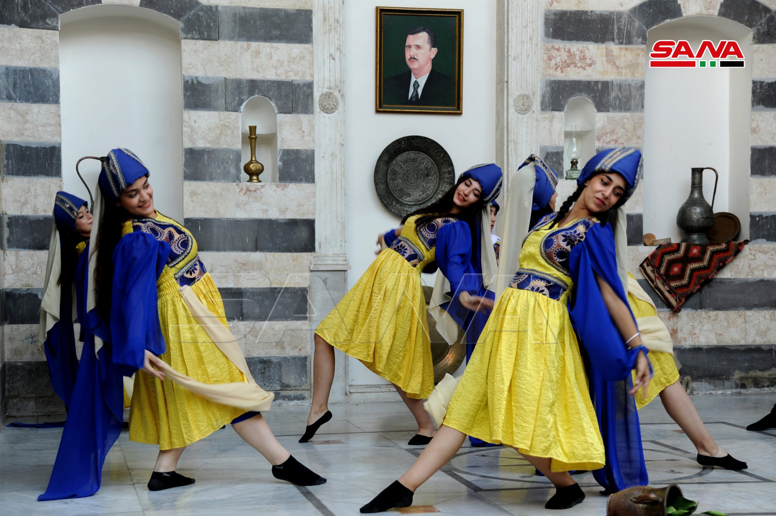 وتضمنت الفعالية فقرات فنية ووصلات أغاني شامية ومعزوفات موسيقية على آلات الكمان والقانون والعود ورقصات فنون شعبية وخطابة وإلقاء قصائد وفقرات تراثية وزجلية شامية.