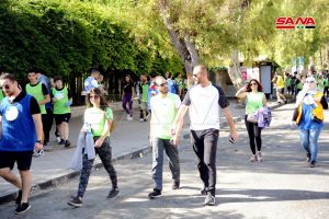 دعماً للأطفال المصابين بالسرطان أقيم صباح اليوم الماراثون الخيري “بدنا نركض لبسمة” والذي انطلق من أمام فندق الشيراتون بساحة الأمويين باتجاه دوار المواساة ومشفى الأطفال عن طريق الربوة إلى أوتوستراد المزة والعودة باتجاه الفندق.