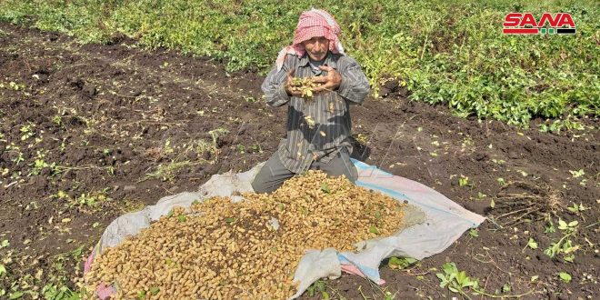 حماة-سانا بلغت المساحات المزروعة بمحصول الفول السوداني في منطقة الغاب بحماة 1166 هكتاراً،