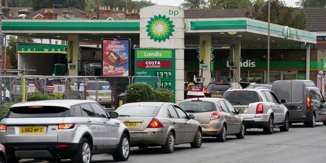 ومنذ مطلع الأسبوع الماضي اصطفت السيارات في طوابير أمام محطات الوقود في جميع أرجاء بريطانيا الأمر الذي تسبب في نفاد مخزوناتها وإثارة غضب السائقين بينما أغلقت شركة بريتيش بتروليوم محطات وقود بسبب نقص البنزين.