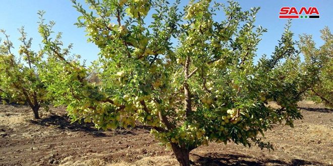 يواصل مزارعو السويداء جني محصول التفاح للموسم الحالي وسط تقديرات بإنتاج يبلغ نحو 45530 طناً.