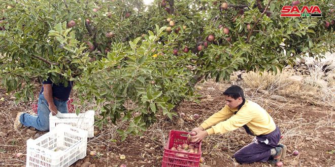 مزارعو التفاح بالسويداء يجنون محصولهم