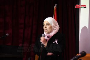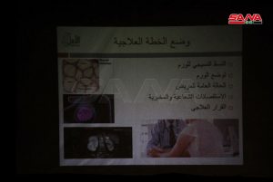 بدوره تحدث الاختصاصي في معالجة الأورام السرطانية الدكتور حسن عبد القادر الحسن عن تقنيات العلاجات الحديثة والاستطبابات فيما أشارت اختصاصية التغذية العلاجية الدكتورة داليا حسامو إلى أهمية اتباع نمط حياة وغذاء صحي لخفض احتمالات الإصابة بسرطان الثدي.