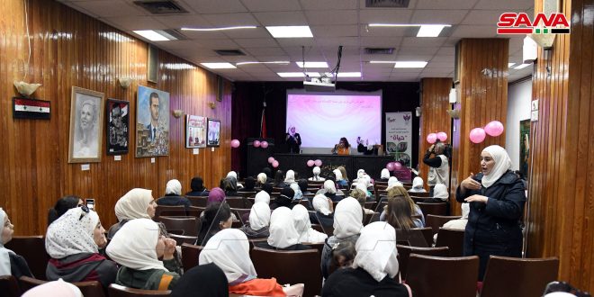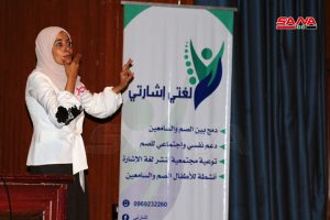 بلغة الإشارة وجهت ندوة توعوية في ثقافي كفر سوسة بدمشق رسائل لسيدات صم حول أهمية الكشف المبكر عن سرطان الثدي وتقنيات العلاج الحديثة وطرق الوقاية.