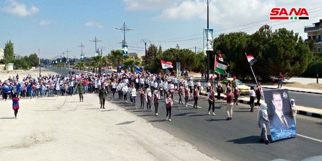 وحمل المشاركون في المسير الأعلام الوطنية ورددوا الأغاني الوطنية معبرين عن فخرهم بمعارك تشرين التي كسرت أسطورة الجيش الصهيوني الذي لا يقهر ومؤكدين أن لجيل الشباب دورا مهما في إعادة اعمار الوطن.