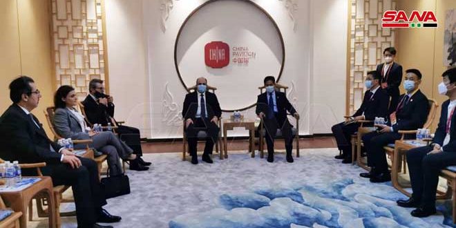 بحث وزير الاقتصاد والتجارة الخارجية الدكتور محمد سامر الخليل خلال زيارته لجناح الصين في معرض إكسبو دبي مع نائب رئيس المجلس الصيني لتعزيز التجارة الدولية المفوض العام للجناح تشانغ شين فنغ سبل تعزيز التعاون المشترك بين سورية والصين في مختلف المجالات.