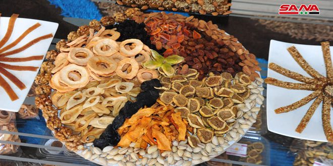 أصناف متعددة للمجففات تنتجها كندة من ثمار التين والتفاح والخوخ والإجاص والتوت والمشمش والدراق والعنب بأشكال ملفتة تتناسب مع طبيعة شكل الفاكهة مبينة أنها تعمل بالتجفيف من نهاية شهر أيار وحتى تشرين الأول فيما ينحصر العمل بباقي الأشهر بالبيع والتسويق الذي يتم عبر المعارف والأصدقاء ووسائل التواصل الاجتماعي.