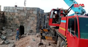 وأوضح نصر الله أن الأعمال الإسعافية والطارئة لترميم أروقة المدرج الروماني في درعا البلد تتضمن أعمال فك وتركيب وتقديم واجهات وقبوات حجرية لأروقة المدرج وحفر وترحيل أتربة وتنفيذ وتقديم ركة تقليدية وأعمال رافعة ومعدات أحجار للحاجة إلى رفع أحجار يزيد وزنها على ألف كيلوغرام إضافة إلى أعمال توثيق للواجهات لافتاً إلى أن العوامل الجوية والطبيعية وعدم القيام بالصيانة الدورية كان له دور واضح بتضرر المعلمين الأثريين.