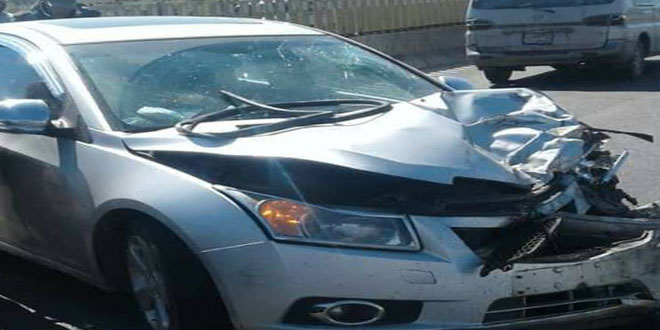 وذكر مصدر في مشفى تلكلخ الوطني لمراسل سانا أن المشفى استقبل 5 أشخاص تراوحت إصاباتهم بين المتوسطة والخفيفة جراء حادث سير نجم عن تصادم سيارتين على طريق حمص-طرطوس قرب مفرق خربة غازي بريف حمص الغربي.