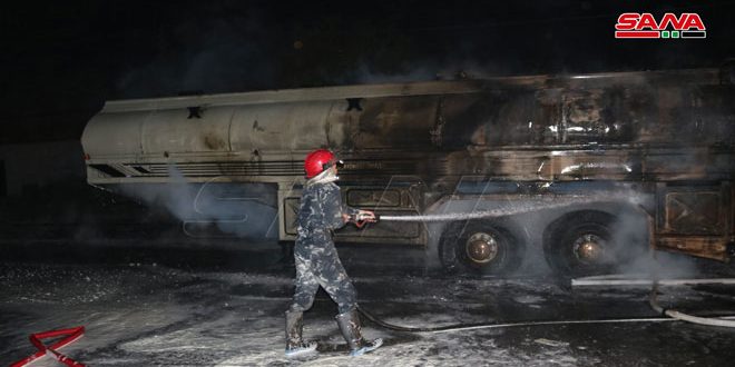 تمكن فوج الإطفاء والدفاع المدني باللاذقية مساء اليوم من السيطرة على حريق نشب في صهريج وقود بمحطة الإكسبريس للمحروقات بالقرب من القنجرة على أوتستراد اللاذقية كسب.