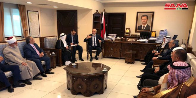 من جانبه أكد الوفد وقوف كل العشائر كما بقية الشعب العربي السوري إلى جانب بلدهم وخلف قائدهم حتى تحرير الوطن من آخر إرهابي مشدداً على رفض العشائر أي شكل من أشكال الاحتلال أو العبث بالوحدة الترابية والاجتماعية والديمغرافية لسورية والاستعداد لبذل الغالي والنفيس للحفاظ على وحدة سورية أرضاً وشعباً بقيادة السيد الرئيس بشار الأسد.