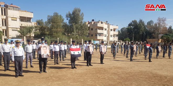 وتضمن الاحتفال الذي أقيم في مقر حفظ الأمن والنظام بحي المريديان بمدينة الحسكة عرضا رياضيا لعناصر قيادة الشرطة وتكريما لأسر شهداء قوى الأمن الداخلي وعدد من الجرحى.